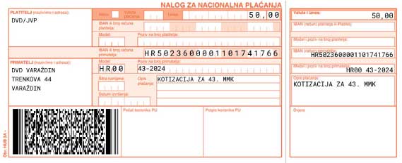 Kotizacija po odjeljenju iznosi 50,00 €, a uplaćuje se na žiro-račun DVD-a Varaždin IBAN: HR 5023600001101741766, poziv na broj: 02 15062024